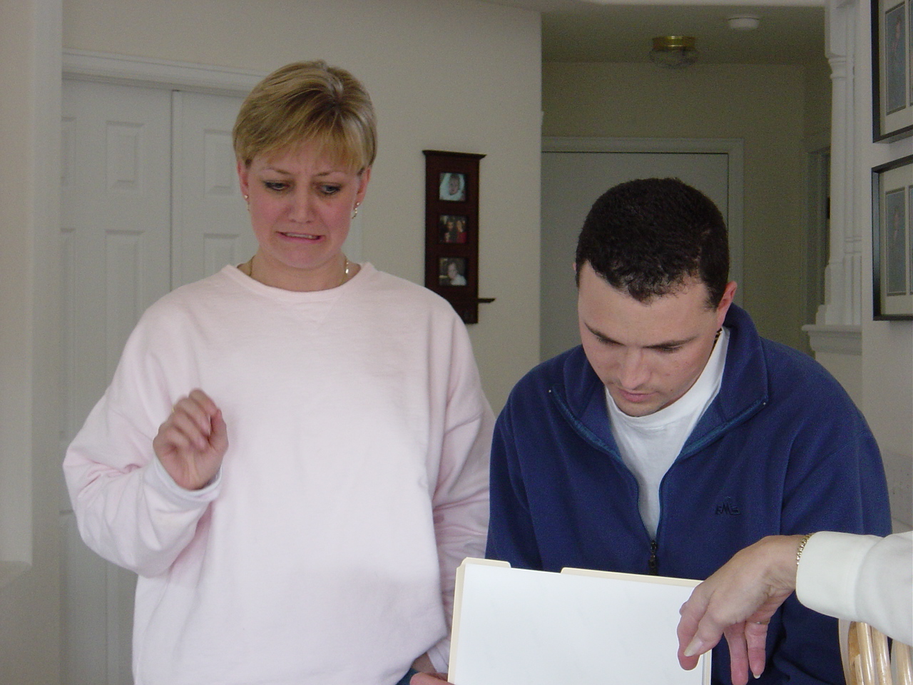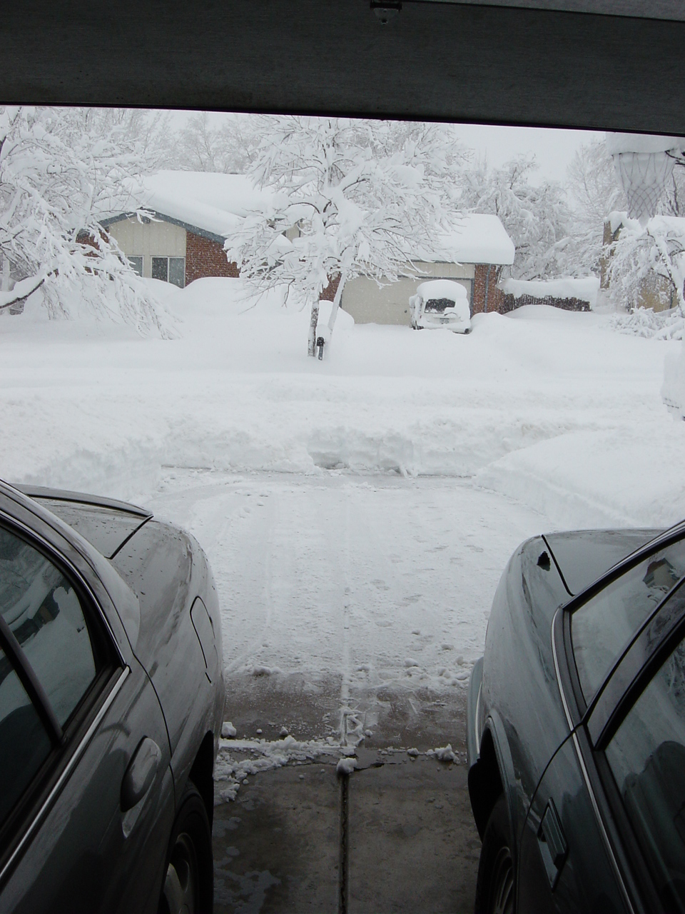 Next the human side and then more cul-de-sac pictures. Kim and Philip have been have been without power for 30 hours. (Give them a call at: 303.794.1477-they have phone service) Susan and Randy have company - Andy and Cherstin came to Colorado to ski. They can't get to the ski areas. Susan is on the phone from Castle Rock now and Andy has promised some pictures from Castle Rock also. Here's a picture moments after their arrival on Friday after 36 hours on the road.