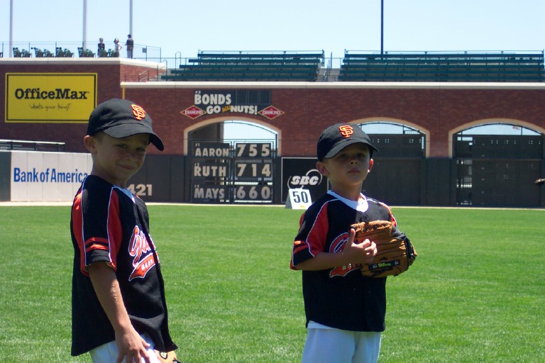 I thought I would forward you some pics taken of the boys this summer at the SF Giants stadium. They had a great time acting as pro baseball players on the field and in the dugout.